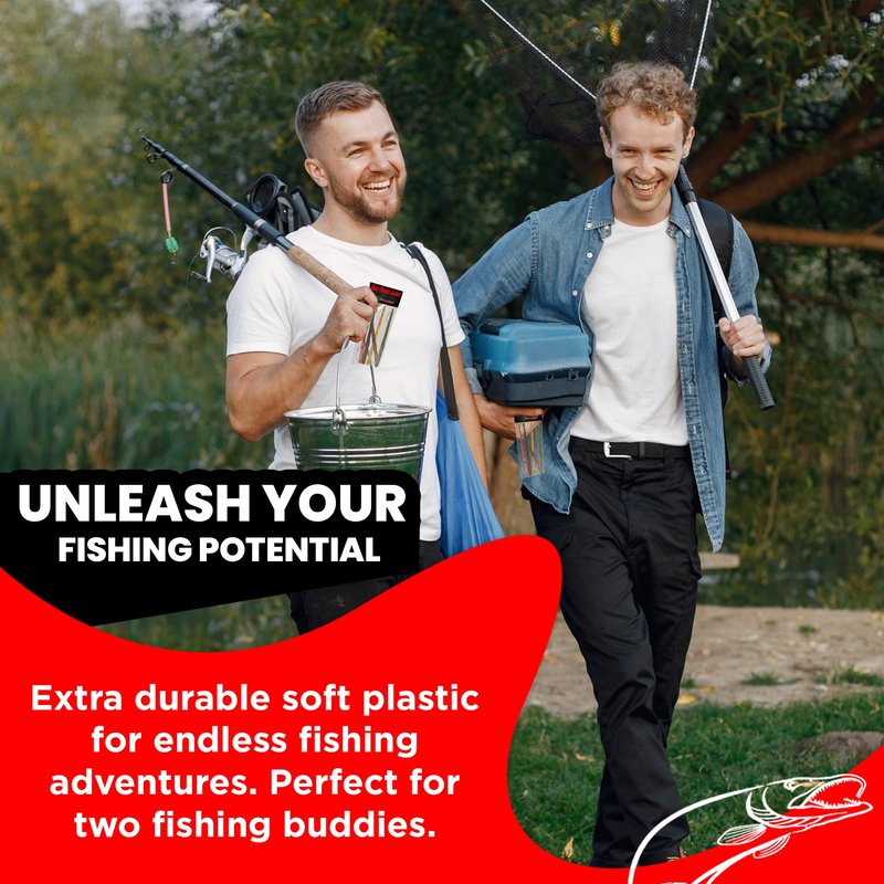 - ANISE SCENTED AND REALISTIC ACTION: Catch the biggest bass in freshwater with our top water baits for bass fishing. The lifelike swimbait lures are a slow sinking rubber worm bait with 2 weedless hooks. Snagless assorted soft plastic baits help you fish more without losing your bass baits and lures. Work as a jerk bait, twitch bait, or similar to a fishing jig. A great choice for bass baits and is sure to improve your fishing tackle.