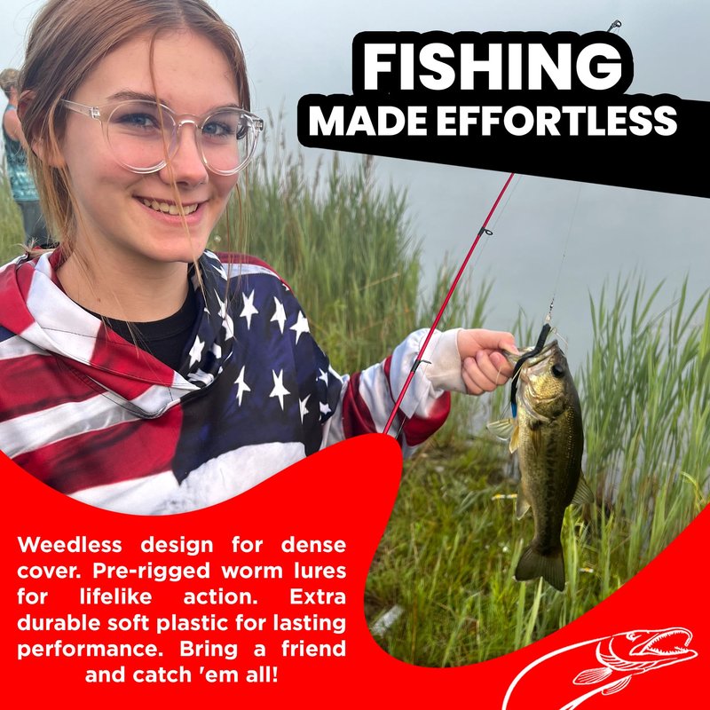 - ULTRA-SHARP WEEDLESS FISHING LURES: This fishing lures worms are shaped with segments, measure 6" featuring double weedless hooks tied together with a 15lb braided line. Easy glide baits for bass fishing feature allows you to get close to the largemouth bass fish hiding in trees, stumps, or heavy weeds. Big bass hides in hard to reach places and our fishing lures for bass help you get close to those big bass you are after with a high hookset volume.