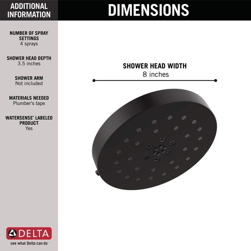 DELTA FAUCET 52488-BL Delta H2Okinetic 4-Setting UltraSoak Shower Head, Matte Black