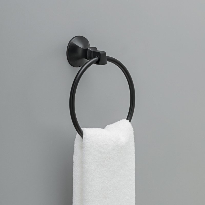 DELTA FAUCET 76446-BL Ashlyn Wall Mount Round Closed Towel Ring Bath Hardware Accessory in Matte Black