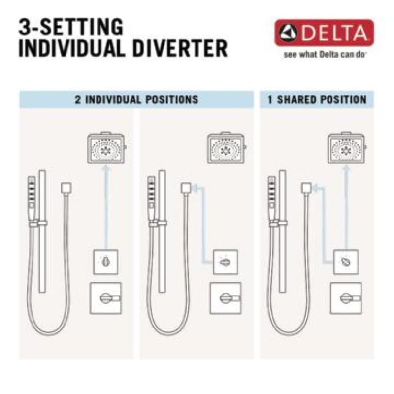 - 3-FUNCTION DIVERTER: The single-handle design offers 2 individual positions and 1 shared position