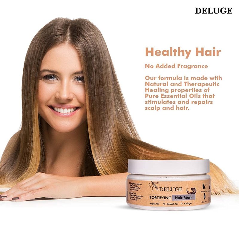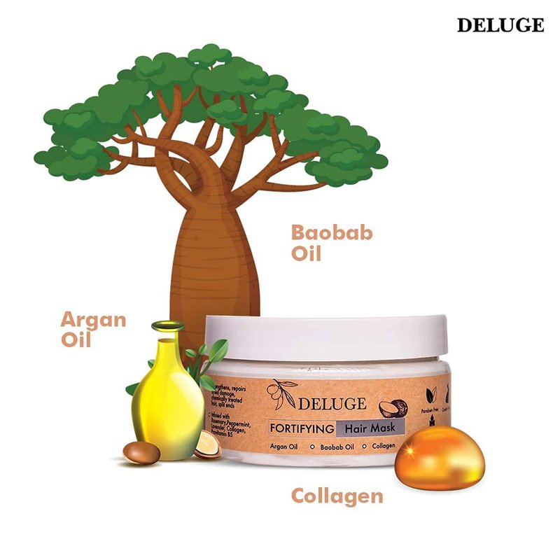 - Experience the power of DELUGE Fortifying Hair Mask, an intensive repair and conditioning treatment enriched with Argan Oil for dry, damaged, and chemically treated hair