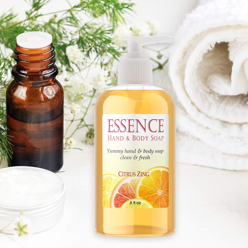 - Citrus Essential Oils: Citrus Zing has a refreshing scent and can be used as a hand soap in the kitchen and bathroom or as a body wash in the tub and shower. Made for daily use for men, women and children.