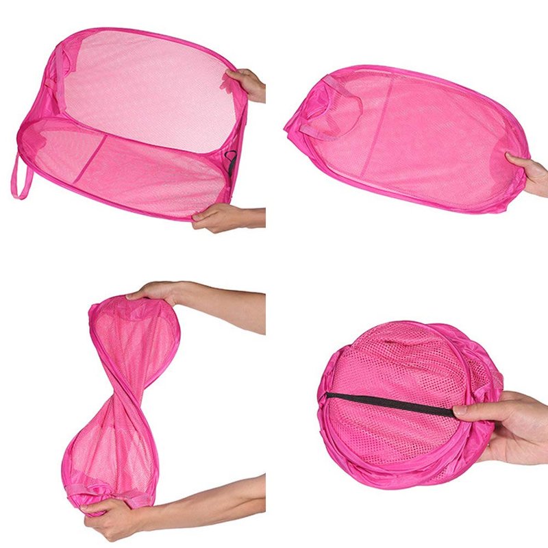 BATTOO's Upgraded Strong Mesh Pop-up Laundry Hamper, Quality Laundry Basket with Durable Handles for Your Daily Use.This is a light weight hamper which can be easily opened to hold a full load of laundry.The measure is 61cm x 35.5cm x 35.5cm, easily holds up a family's cloths, or one person's weekly laundry and last longer. And it's foldable to very small size (7.7 x 7.7'')It is nice to take with you on any vacation to put dirty laundry in. This mesh pop-up hamper has easy-carry handles that make toting laundry from room to room a snap. They also have a convenient side pocket and fold for easy storage. Also ideal for storing sporting goods, toys, and more! The breathable mesh construction keeps air circulation, sturdy handles and solid bottom make it more durable.