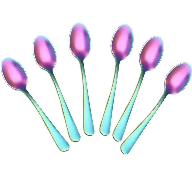 Demitasse Espresso Spoons, Mini Coffee Spoon, Stainless Steel Small Spoons for Dessert, Tea,Set of 6(Rainbow)