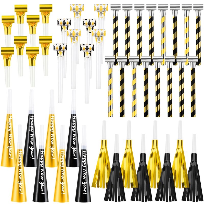 - Enough Quantity: The package contains a total of 48 pieces of colorful blowouts noisemakers in 6 different styles, such as fringed noisemakers, horns, and musical whistle blowers, which are sufficient for you to share with your families and friends when you are going to hold a New Year party, and then you will enjoy a happy time during the party