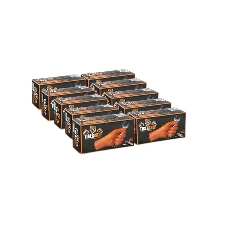 DENCO DISTRIBUTING, INC. Tiger Grip Nitrile Gloves - Hi Vis Orange - 7mil - Textured - Powder & Latex Free - Case of 10 Boxes (XXL)