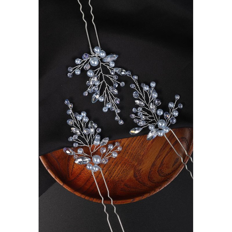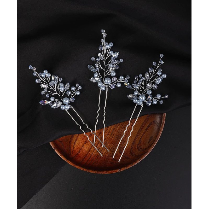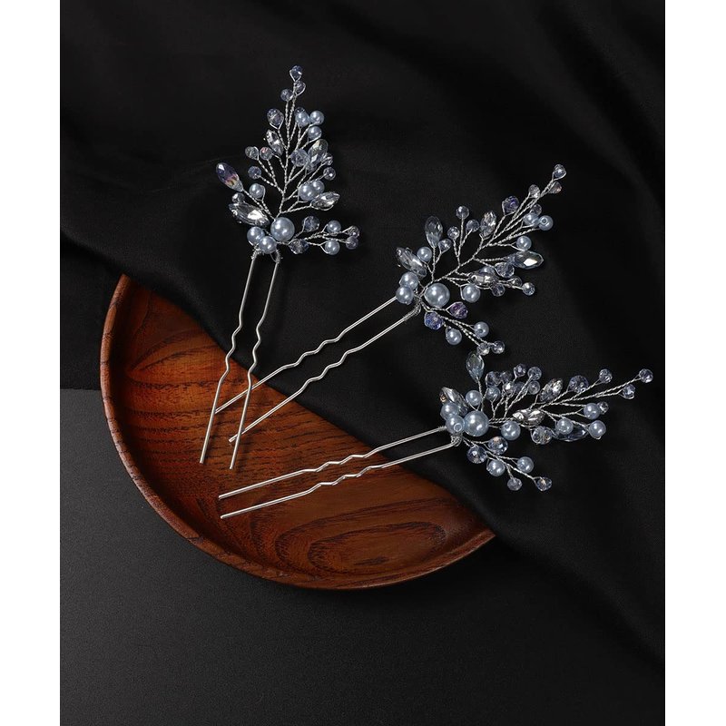 Denifery 3PCS Bride Wedding Blue Hair Pins Silver Crystal Hair Clips Rhinestone Bridal Headpieces Crystal Hair Accessories for Women and Girls (Light Blue)