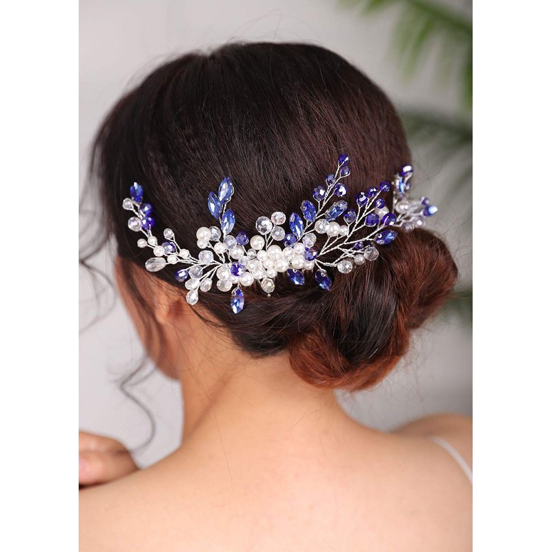 Denifery Bridal Hair Comb Blue Vintage Crystal Rhinestone Vintage Hair Comb Wedding Party Hair Accessories for Women and Girls