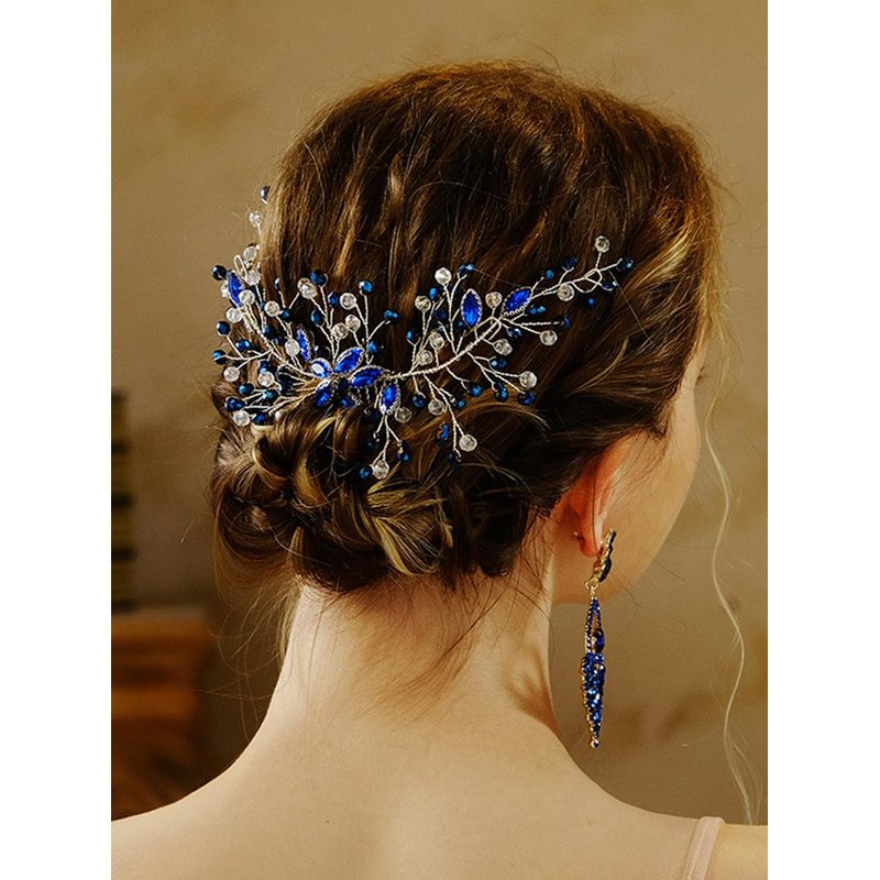 Denifery Crystal Wedding Hair Comb Bridal Flower Rhinestone Hair Side Comb Handmade Blue Crystal Hair Pieces Wedding Hair Accessories for Women Girls