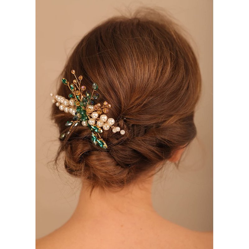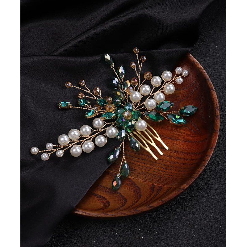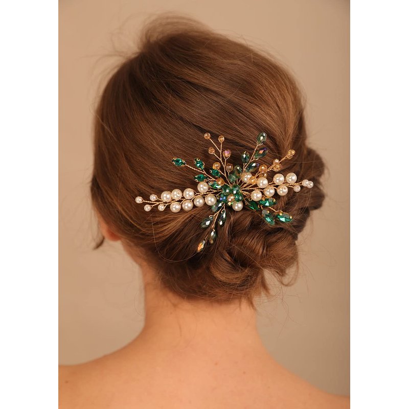 Denifery Emerald Hair Comb Emerald Headpiece Gold Emerald Hair Piece Green Hair Comb Emerald Hair Accessories for Women and Girls (Style 4)