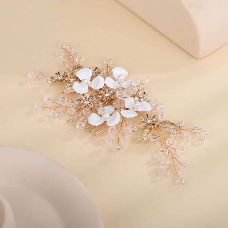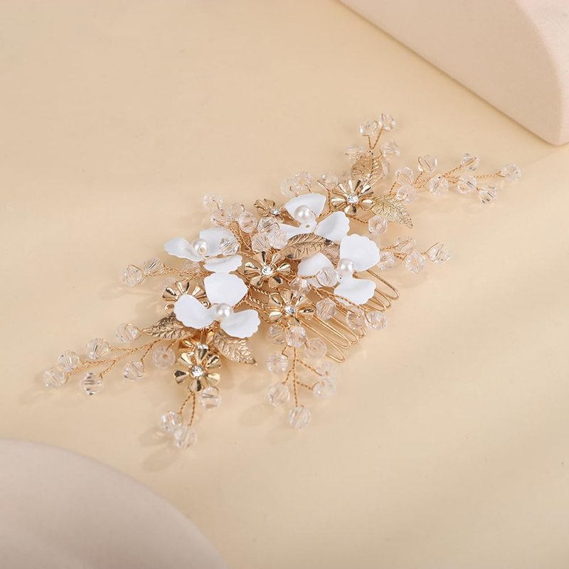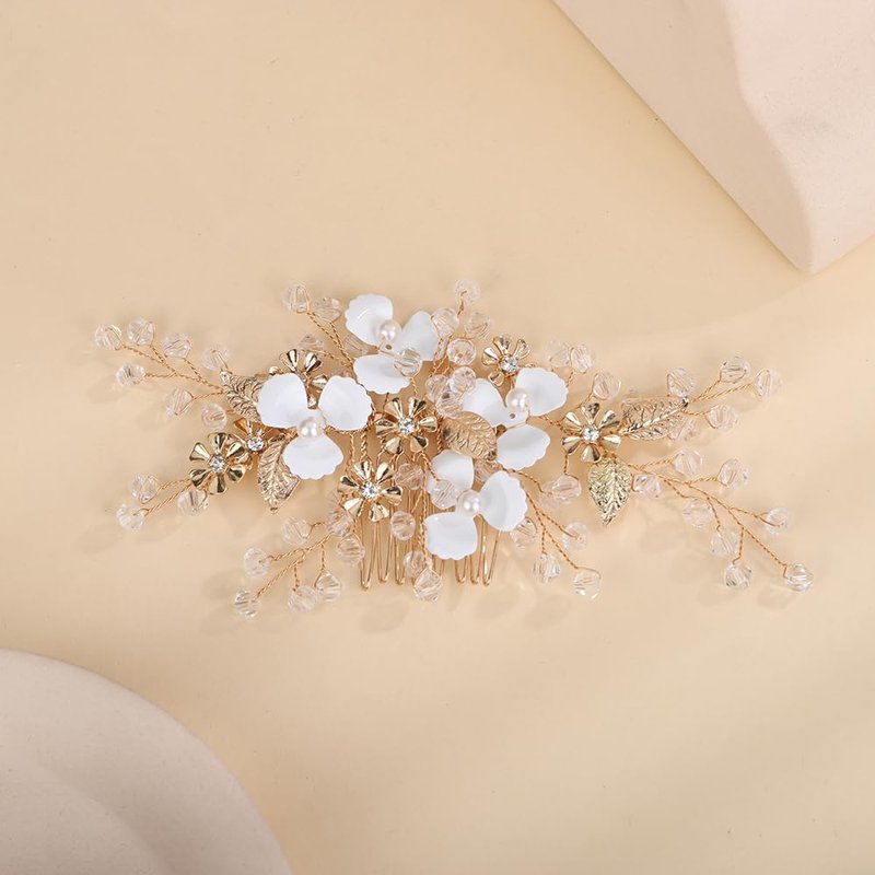 Denifery Flower Girl Headpiece for Wedding Princess Flower Pearl Wedding Comb Rhinestone Hair Comb for Women Girls Toddler Wedding Party Photography