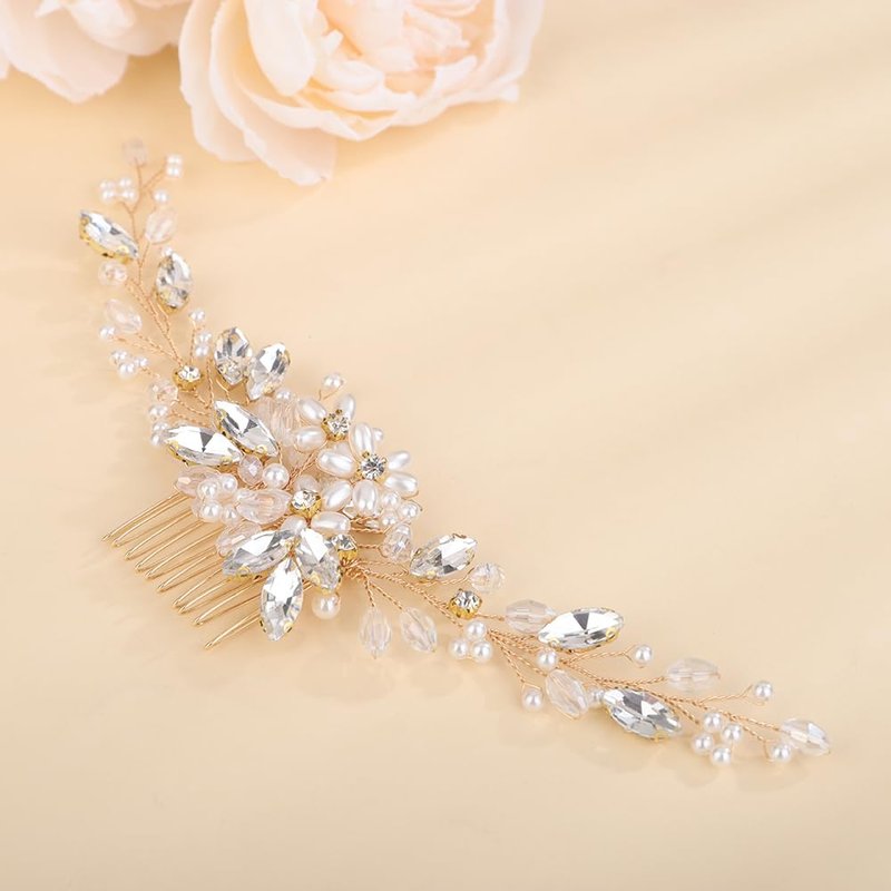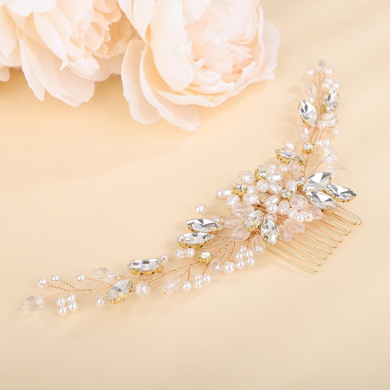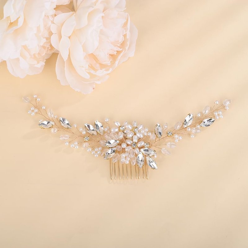 Denifery Flower Girl Headpiece for Wedding Princess Pearl Wedding Comb Pearl Crystal Hair Comb Hair Accessory Wedding Party First Communion for Women and Girls