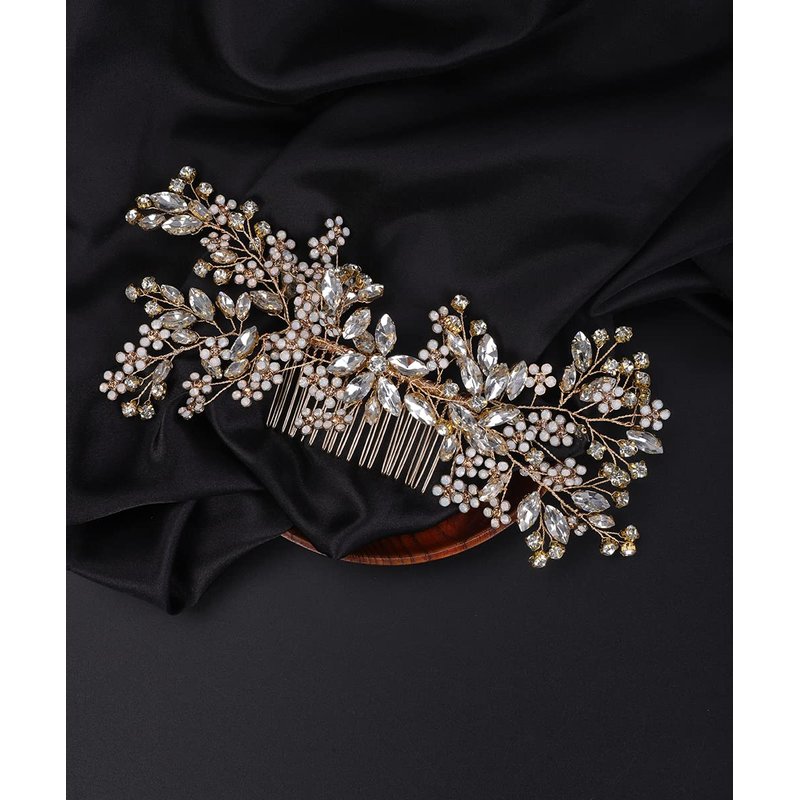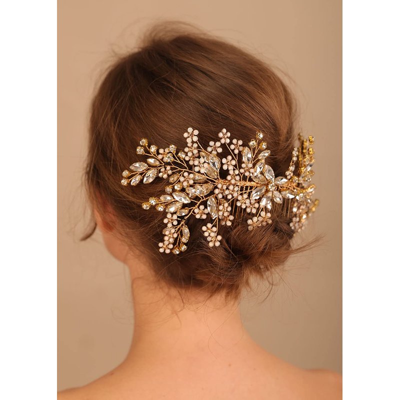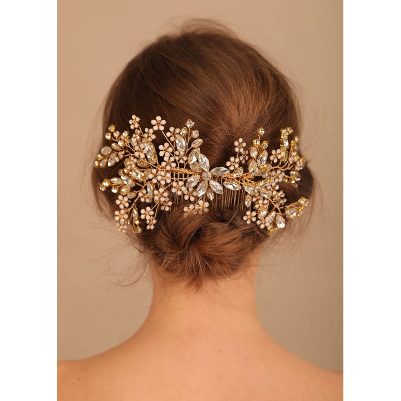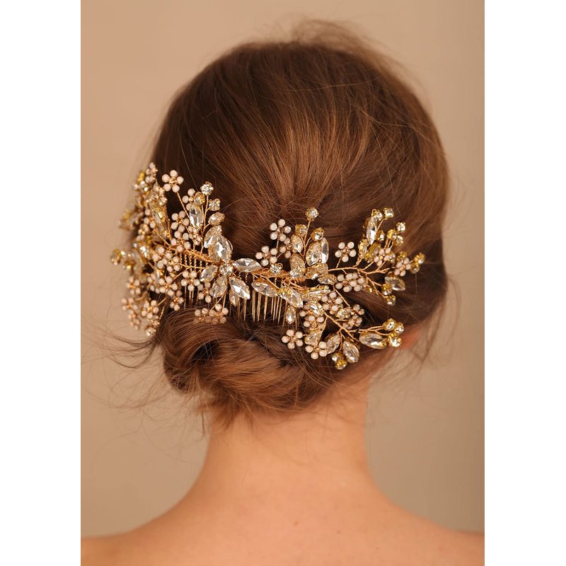 Denifery Gold Bride Crystal Wedding Hair Comb Silver Rhinestone Bridal Side Comb Opal Hair Piece Flower Wedding Hair Accessories for Women and Girls