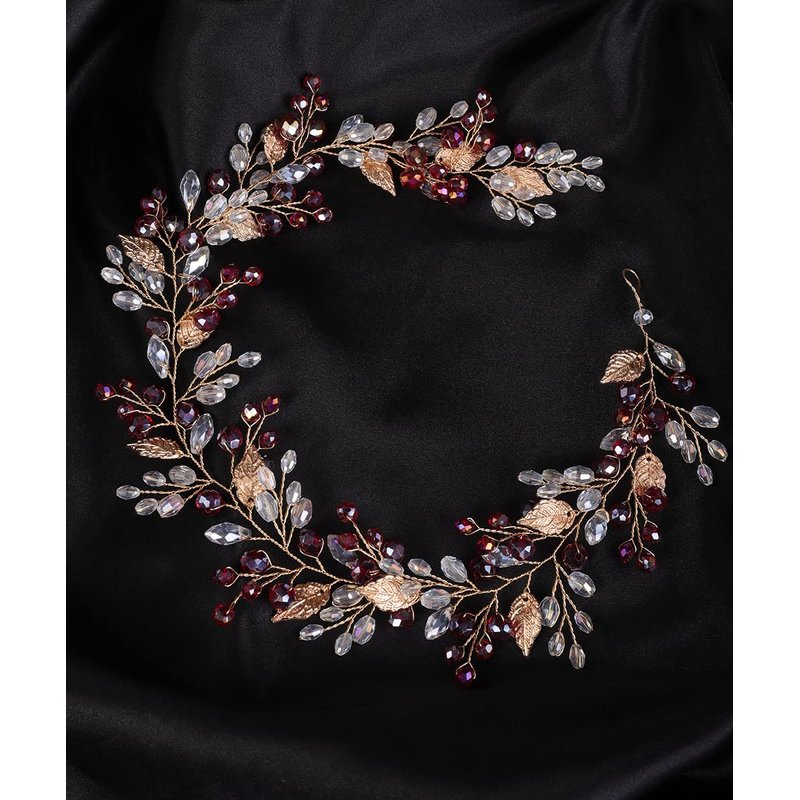 Denifery Red Hair Vine Crystal Hair Vine Wedding Fall Red Hair Piece Boho Hair Vine Gold Leaf Hair Vine Crystal Headband Bridal Hair Vine for Women and Girls