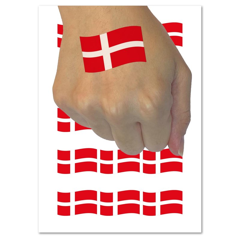 Denmark with Waving Flag Cute Temporary Tattoo Water Resistant Fake Body Art Set Collection - 15 2" Tattoos (1 Sheet)