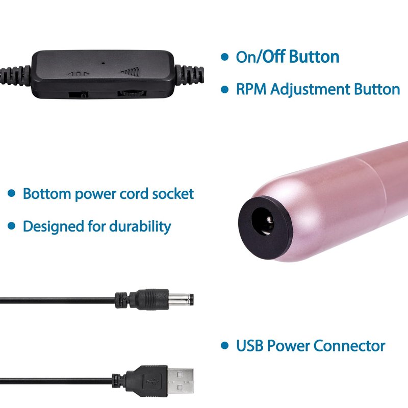 - UPGRADED TECHNOLOGY - DenniesCare electric nail drill is durable, low noise, and low heat. Equipped with an upgraded motor. It's easy to use with any USB socket, such as a power bank, laptop, or AC adapter, so you can do your nail artwork anytime, anywhere.