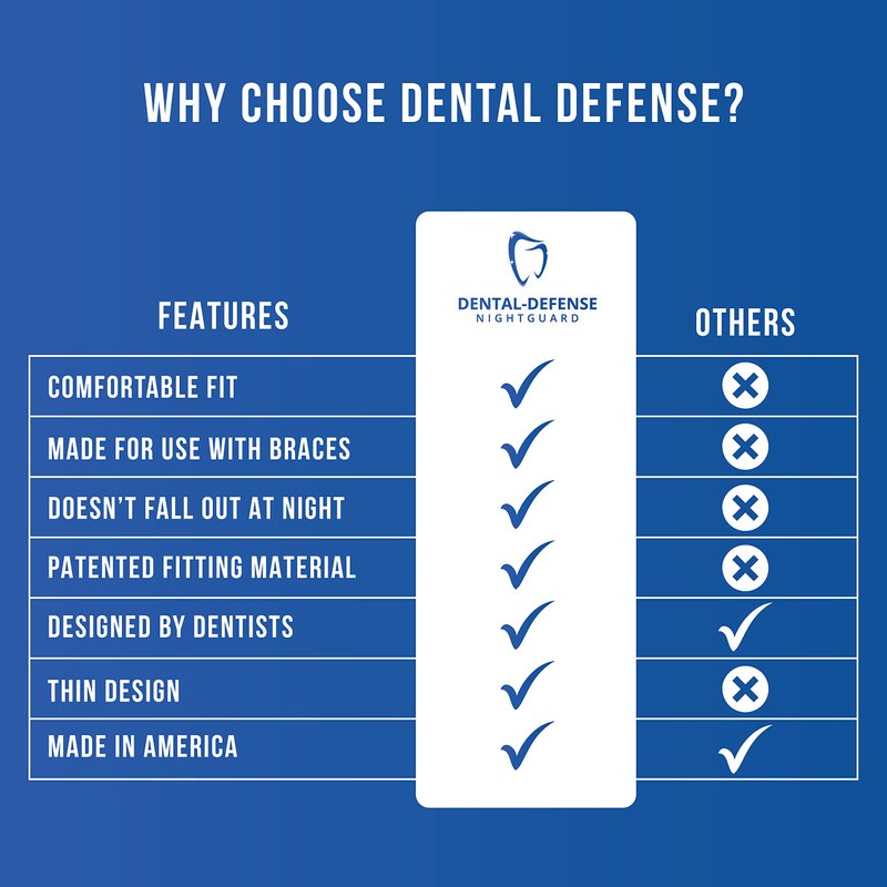 Dental-Defense Custom Professional Fit Adult Clear Nightguard For Braces - Pack of 2 Includes: 2 clear Dental-Defense nightguards 1 Travel Hygiene Case Step-by-step instructions for the molding and fitting process. Dental-Defense is a premium, custom professional fitting nightguard designed to eliminate the pain and problems caused by teeth grinding and bruxing for those who have braces. Dental-Defense uses a high-quality, BPA-free hydrophobic fitting material while providing a comfortable fit just like you get from your dentist, but at a fraction of the price. Our material is safe on brackets and ensures that you can keep your braces intact. It’s easy to fit using your microwave and comes with two products in case you have any trouble fitting one of them. The mouth guard can also be fit using boiling water instead of a microwave. Our mouth guard is long lasting, and its slim design makes it easy to fit over braces and comfortable to wear. Our high-quality professional mouthguard was designed by dentists to help prevent bruxing and teeth grinding with people who have braces in mind. It is BPA free and made from a hydrophobic fitting material that ensures a tight, comfortable fit. It can withstand grinding and does not need to be replaced frequently like many other nightguards. Simply put, our night guard is the best solution for teeth grinders with braces.