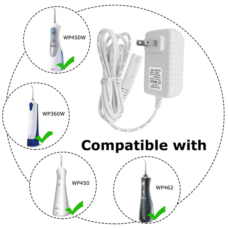 Dental Flossers Charger Replacement for Waterpik WP360 WP462 WP450 WF13 WP100 Water Flosser Power Cord Adapter Replacement Parts(White)