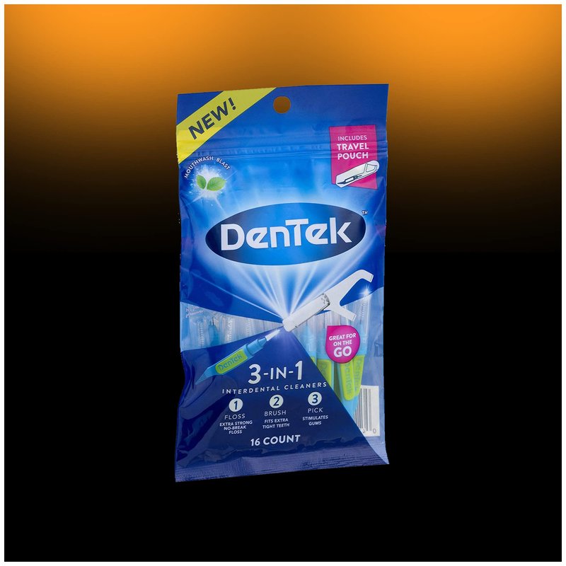 DenTek 3-In-1 Interdental Cleaners | Floss, Brush, Pick, Travel Pouch | 16 Count