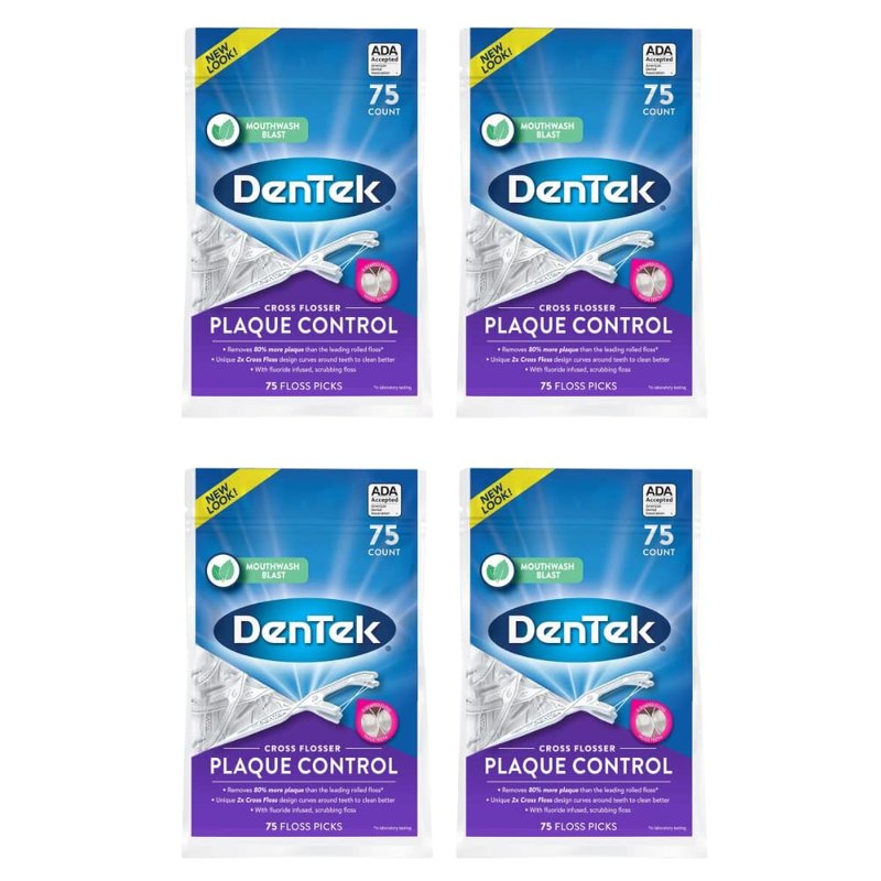 DenTek Cross Flosser Plaque Control Floss Picks, X-Shaped Floss, 75 Count, (Pack of 4)