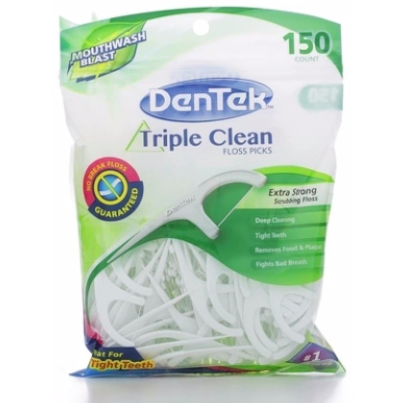 DenTek Triple Clean Advanced Clean Floss Picks have our thinnest, strongest floss that won't break or shred. The floss on DenTek Triple Clean Advanced Clean Floss Picks is composed of over 200 individual cleaning strands. The micro-textured pick helps to scrape away stubborn bits of food and plaque, and the tongue cleaner helps to fight bad breath. DenTek Triple Clean Advanced Clean Floss Picks feature Mouthwash blast flavored floss with fluoride-infused floss strands. While your teeth may feel clean after using a toothbrush and toothpaste, they're not fully clean without cleaning the spaces between teeth where food and plaque tend to remain. Use DenTek Triple Clean Advanced Clean Floss Picks to remove plaque and bits of food that often stay stuck between your teeth. Help prevent tooth decay and tooth stains by flossing after every meal.