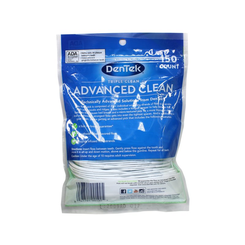 DenTek Triple Clean Floss Picks feature scrubbing floss to remove food and plaque, a textured pick to deep clean between teeth and a built-in tongue scraper to keep breath fresh. Featuring a No Break Guarantee, DenTek Triple Clean Floss Picks help keep your whole mouth healthy. Conventional dental floss can't always remove food and plaque in hard-to-reach interdental spaces. Try DenTek Triple Clean Floss Picks when you need to remove food and plaque after eating. Dentists recommend flossing to prevent cavities, gum disease and other dental health problems. Help protect your teeth against stains and decay by flossing after every meal. When used after every meal, DenTek Triple Clean Floss Picks help to remove food and plaque, reduce the chance of tooth staining and decay, and fight bad breath. Get DenTek Floss Picks to help you show off your healthy smile, and get triple the protection of traditional rolled floss.