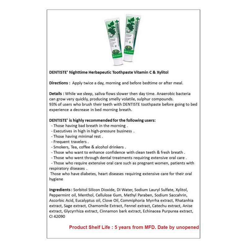 - 2 X 100g Dentist Dentiste Plus White Whitening Vitamin C Xylitol Gum Toothpaste