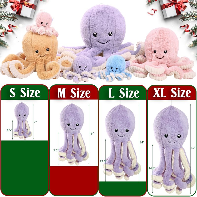 - Perfect Gift Choice: This adorable octopus is perfect for shelf styling in a baby’s room. Regardless of age, it's still the sweetest cute gift for kids, girls, boys, babies, infants, toddlers, friends, on birthday, Children's Day, Halloween, Thanksgiving Day, Valentine's Day, Christmas Day, etc. It is not only a great partner to grab while watching a movie, or reading a book but also perfect as a large pillow to hug even during sleep.
