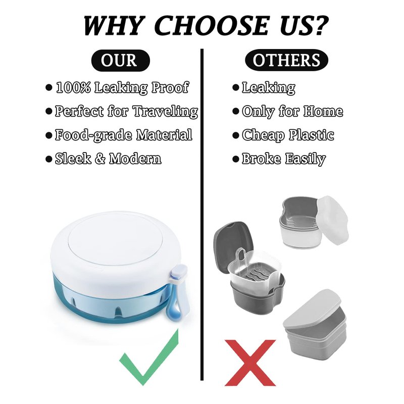 - 【DURABILITY】This denture case is made of PP, PS and silicone materials. We used use food-grade silicone sealing ring, which ensures our product is environment-friendly and non-toxic. After testing, our products can also remain stable and not deformed under high temperature conditions. High quality of this denture case makes sure users can use this over 5 years.