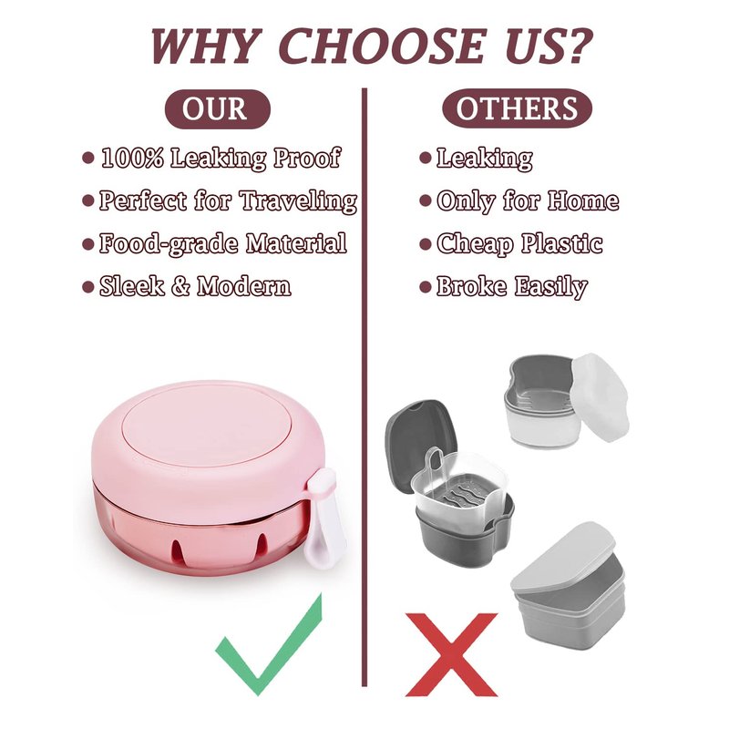 - 【DURABILITY】This denture case is made of PP, PS and silicone materials. We used use food-grade silicone sealing ring, which ensures our product is environment-friendly and non-toxic. After testing, our products can also remain stable and not deformed under high temperature conditions. High quality of this denture case makes sure users can use this over 5 years.