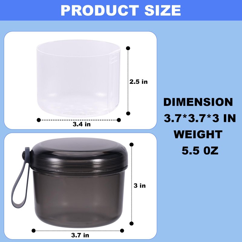 - LARGER ENOUGH TO HLID & SOAK YOUR FULL DENTURES - This denture soaking container is 3.7" diameter × 3" height, and the rinsing basket is 3.4" x 3.4" x 2.5". Large enough to clean and preserve your full dentures! Not only dentures, but you can also use this retainer cleaner case to clean and store your retainer, wire retainer, mouth guard, night guard, Invisalign, pacifiers, gum shields, bite guards and more.