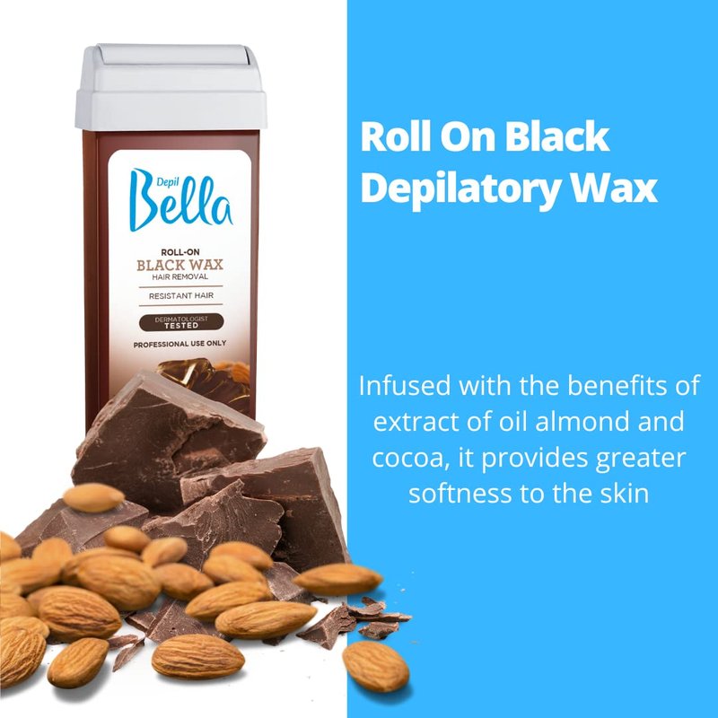 - SPA LIKE EXPERIENCE: Our Depil Bella Roll-On Black Depilatory Wax with Cocoa and Almond Oil combined formula soothes the skin for a spa like experience.
