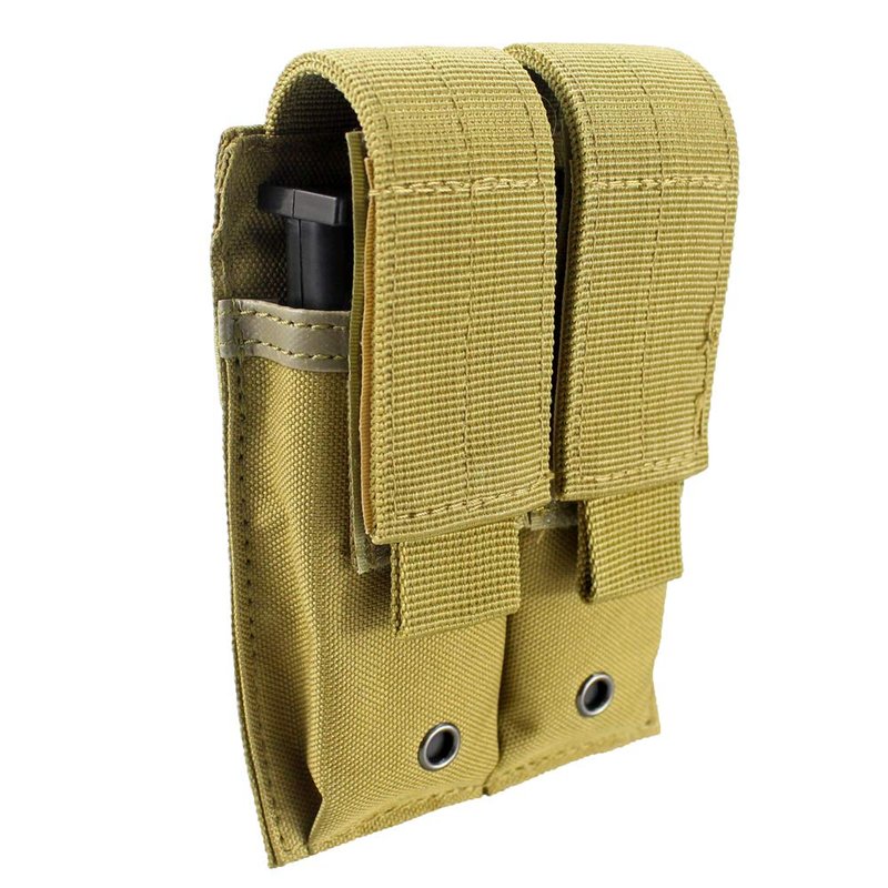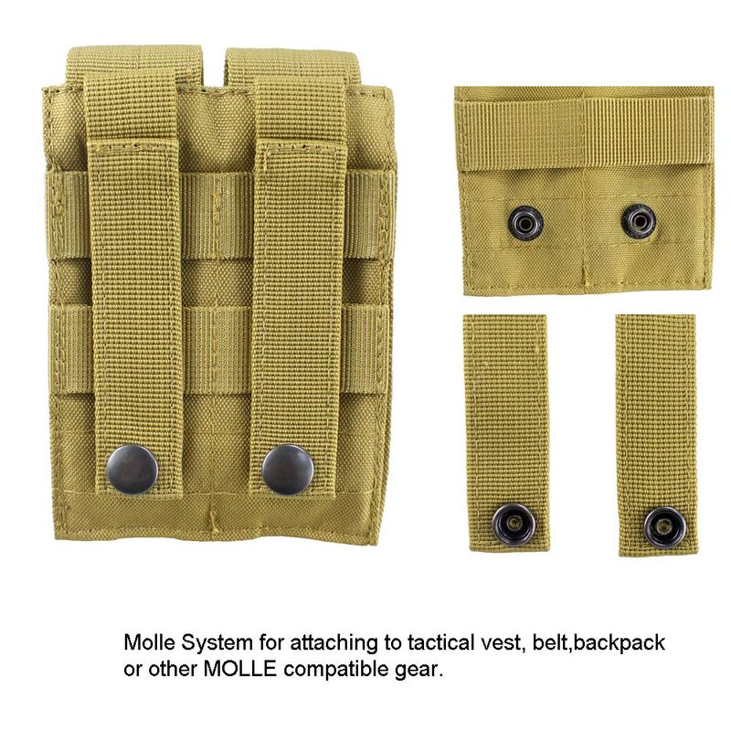 Double pouch can hold flashlight, knife,Magazine or other gadgets.