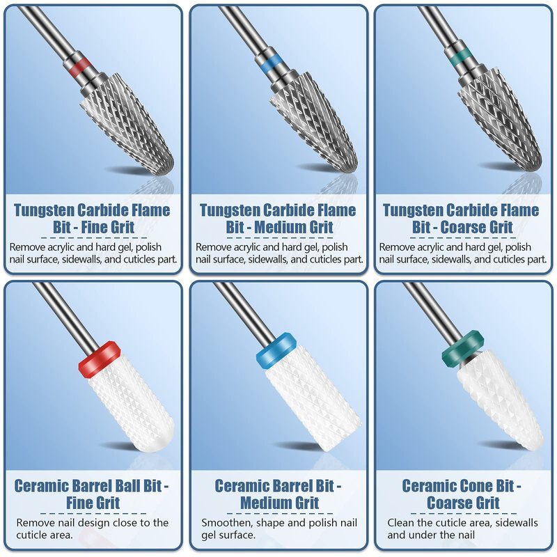 - VERSATILE: Universal 3/32-inch nail drill bits fit most electric or rechargeable manicure nail file machines. Perfect for nail salon, beauty parlor, spa or personal manicure pedicure, DIY nail art at home.