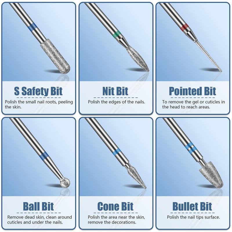 - PREMIUM MATERIAL: Adopt the highest precision standards diamond with superior strength, sharpness, and durability. You can be sure that these cuticle drill nail bits will last for a long time.