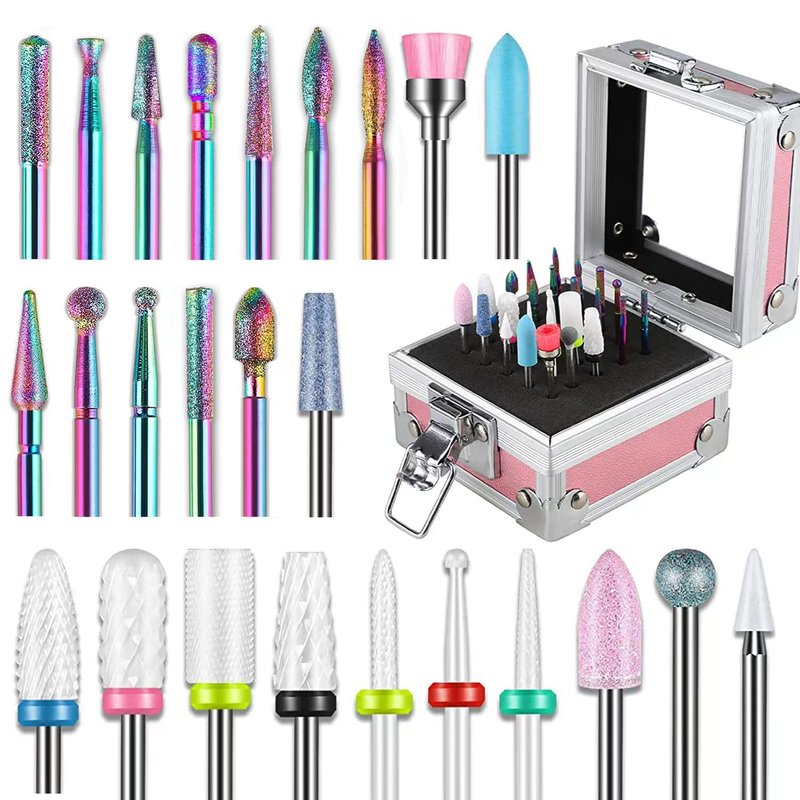 - Variety 25pcs Nai Drill Bits Set: Includes nail polishing bit, cleaning brush bits, ceramic bits, and diamond carbide bits. Perfectly fits any nail gel artwork like grinding, sharpening, carving, polishing, smoothing and cuticle removal, and removing acrylic nails. Suitable for both beginners and professionals.