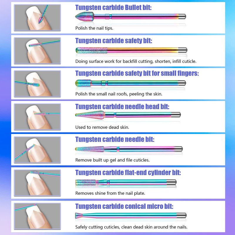 - Long-Lasting: The nail bits for nail drills are made of premium material, sharp, durable, and also crafted delicately.The rainbow diamond carbide bits with durable and superior strength, and The ceramic bits with excellent heat dissipation, sturdy enough to remove hard gel nails. With Good Care, You can use them for a long time.