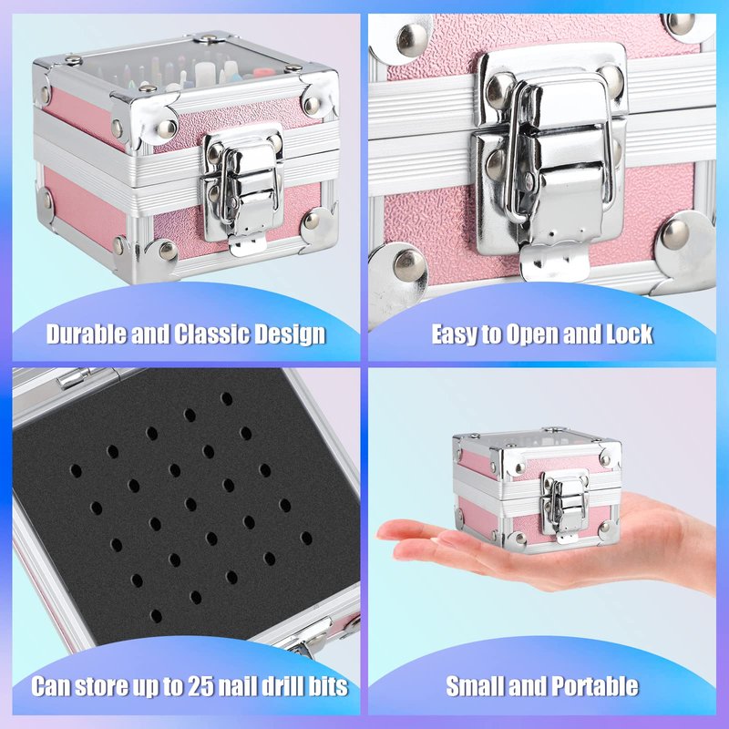 - Comes in a Pink Box: The case is very sturdy and has a secure latch and clear top to let you see inside. It's great being able to have all of your nail drill tips in one place. It won't be cumbersome to just throw into a handbag or in a makeup/manicure case