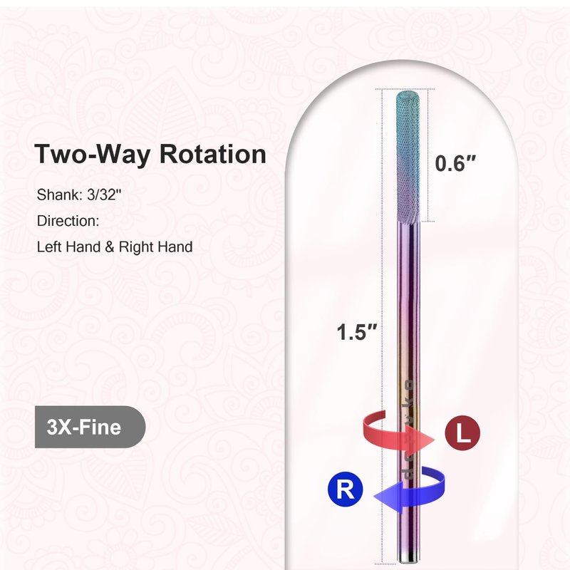 - 【3XF Carbide Cuticle Nail Drill Bit】Quantity: 1 pc | Color: Multicolor | Grit: 3X-Fine (Extra Fine) | Shape: Flat Top Small Straight Barrel | Shank Size: 3/32'' | Direction: Two-Way Rotation | User: Beginner, Experienced, Nail Tech, Salon, Cuticle Work, etc