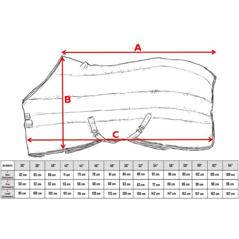 - SIZING INFORMATION- to size this blanket, measure (in inches) from the center of your horse’s chest, to the end of your horse’s rump. If your horse is in-between sizes, we recommend sizing up to the closest available size.