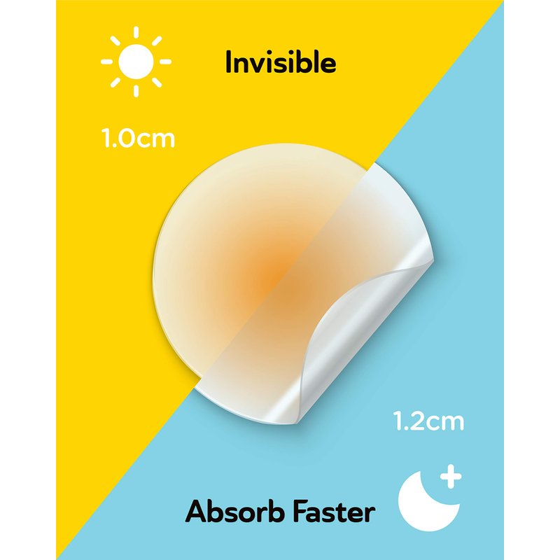 - 【Day & Night Non-Stop Skincare】 This cystic acne patch bundle comes with 3 sizes for all-day care. The patches for daytime are slightly smaller (Width:0.39" & 0.47) and are perfect for blending in under your makeup. The patches for nighttime (Width:0.59") is thicker in the middle, which enhances absorption speed