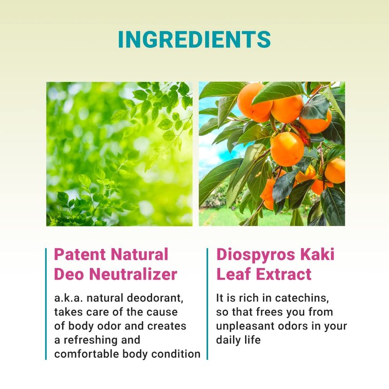 - BODY ODOR CARE: Natural Deo Neutralizer, a.k.a. natural deodorant, takes care of the cause of body odor and creates a refreshing and comfortable body condition. Diospyros Kaki Leaf Extract is rich in catechin, freeing you from unpleasant odors in your daily life