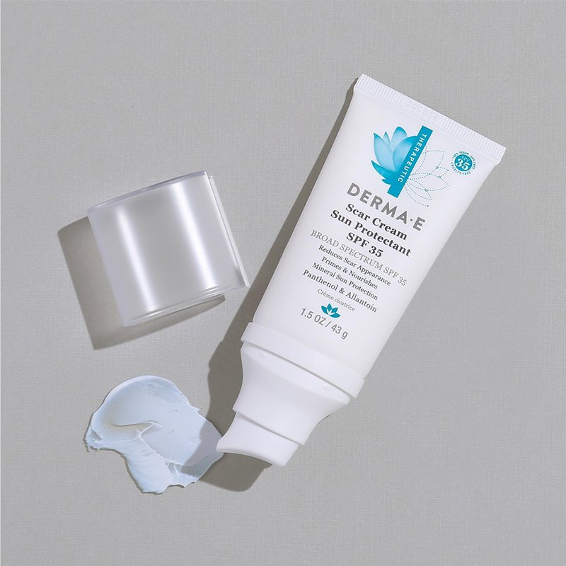 DERMA E Scar Cream Sun Protectant SPF 35 – Advanced Scar Lotion with UVA/UVB Mineral Sunscreen for Scars, Burns, Cuts and Acne Scars - Natural Scar Treatment for Face, 1.5 Oz