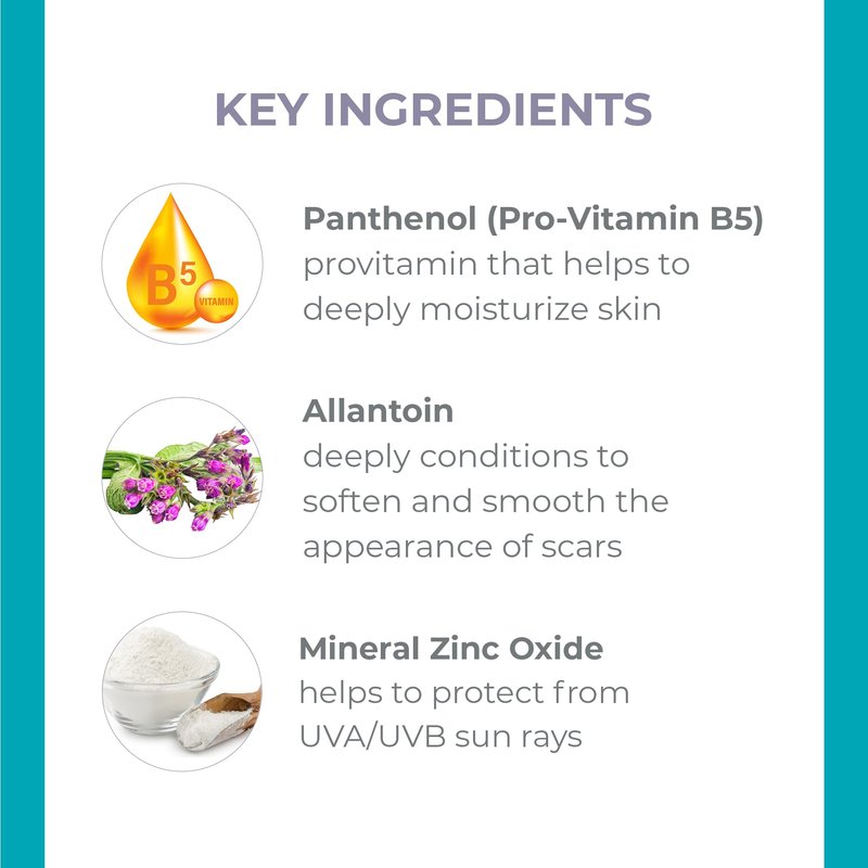 - NATURAL FORMULA: Panthenol and Allantoin in the sunscreen scar lotion help to hydrate, moisturize, and soothe the affected skin, while encouraging self-healing for healthy-looking skin.