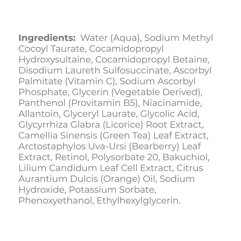 - CLEANSING FACE WASH: This sulfate-free, pH balanced Vitamin C cleanser gently and effectively removes makeup, dirt, oil and impurities from facial skin, while promoting a visibly radiant complexion.