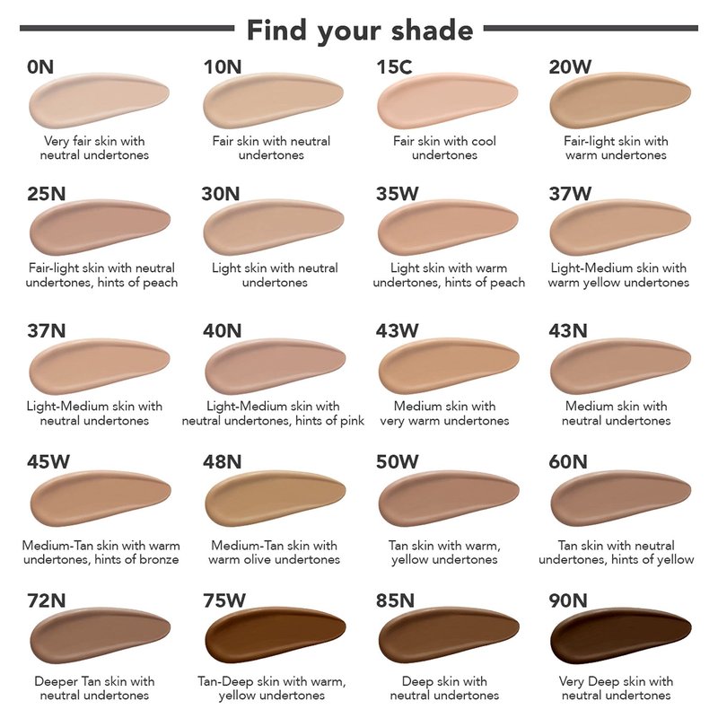 - Color: 20W: Fair skin with Warm undertones