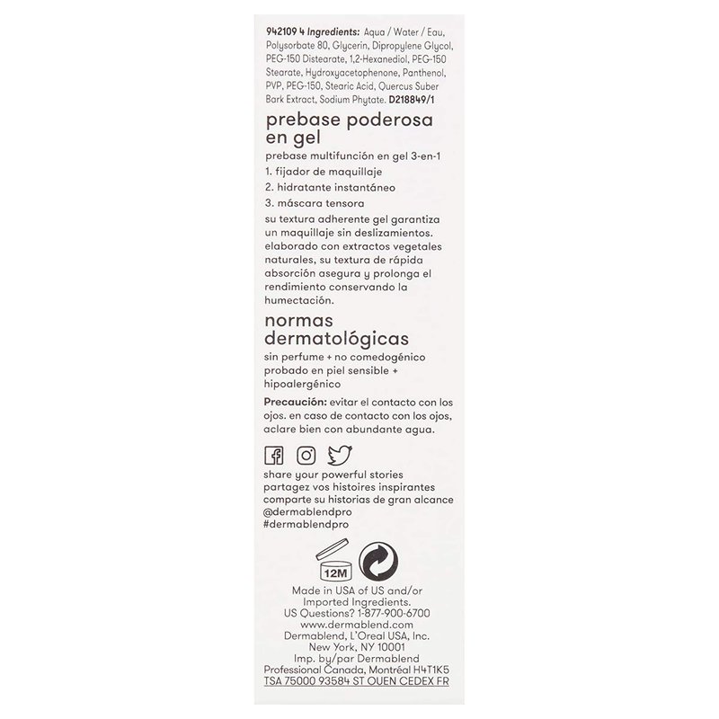 Dermablend Insta-Grip Jelly Primer Face Makeup, Silicone-Free Face Primer for Dry Skin, Pore Minimizing with 24HR Wear, 1.0 Fl oz