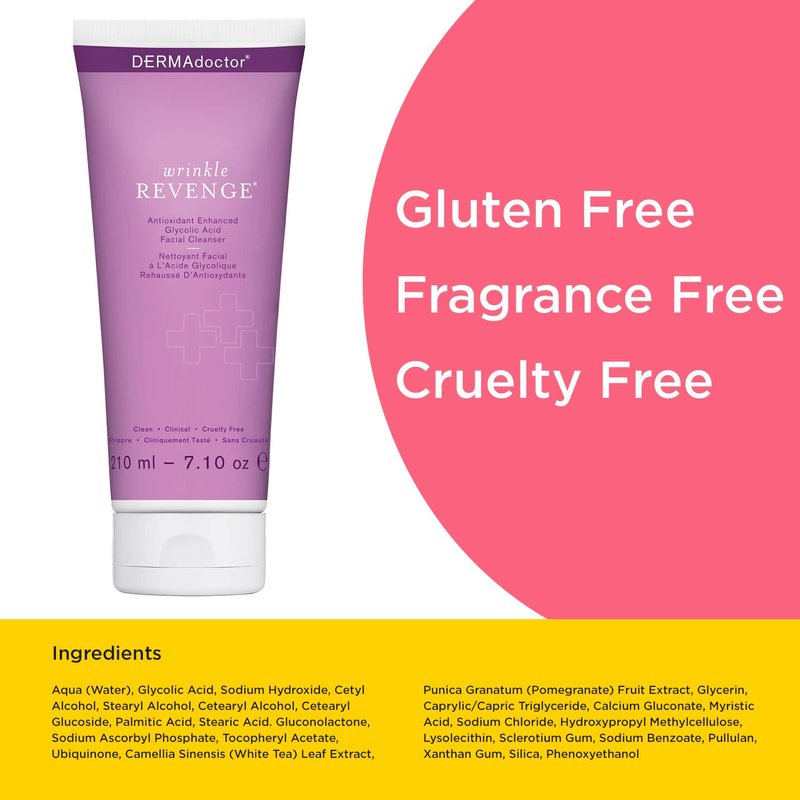 DERMAdoctor Wrinkle Revenge Antioxidant Enhanced Glycolic Acid Facial Cleanser, 7.10 oz