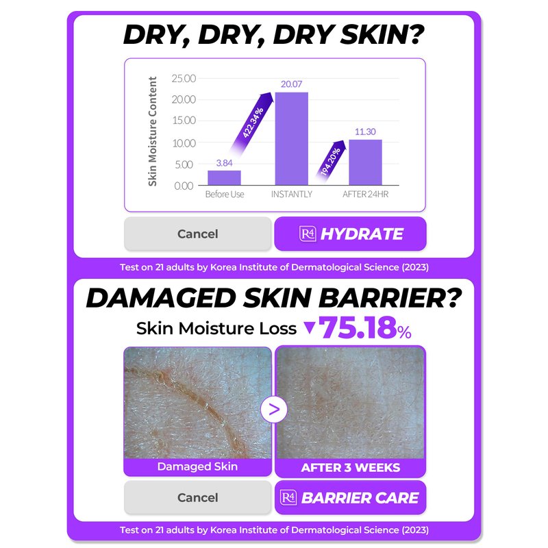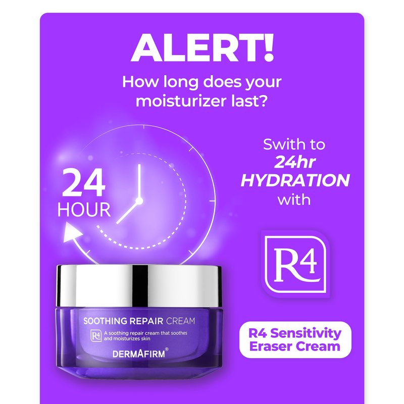 - 24-HOUR DEEP SKIN HYDRATION. DERMAFIRM Soothing Repair Moisturizer Face Cream R4 is a hydration elixir, powered by the natural goodness of plant exosomes derived from Eucalyptus and Perilla Leaf. Experience deep moisturization for an entire day, as it strengthens your skin barrier, effectively combating moisture loss.